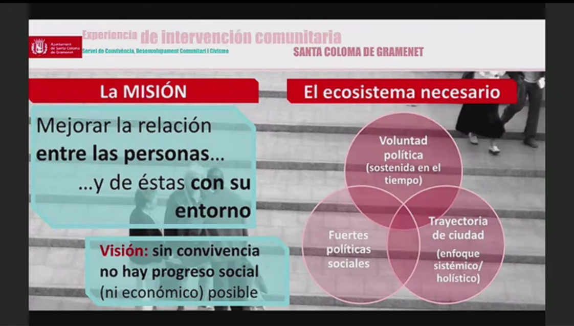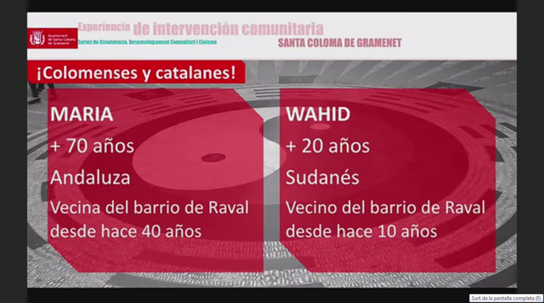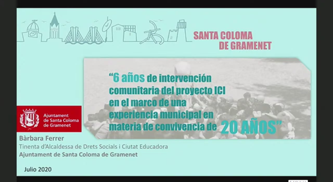 A good example of community work from an intercultural perspective is that carried out by the Santa Coloma de Gramanet City Council, which is part of both the RECI and the ICI project. According to Bàrbara Ferrer, deputy mayor and head of the Social Rights and Educating City area, Santa Coloma has been "a pioneer city in the development of coexistence policies and has a clear commitment to giving voice to interculturality".